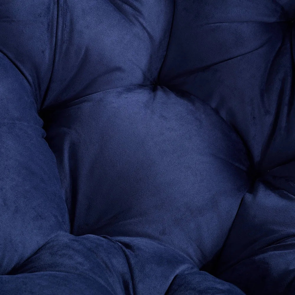 Add a touch of comfort to your home with the Papasan chair with a cushion. Designed with a sturdy steel frame and faux wicker accents, this classic chair features a soft 4.5" thick tufted seat cushion covered in rich velvet-look upholstery to create an inviting seating option for one adult. The Papasan chair with cushion has a chair bowl that securely attaches to the base for comfort and stability. This Papasan chair's cushion cover is made from 100% polyester that is hand-wash only with non-chlorine bleach when needed. Lay flat to dry. Cool iron if necessary. Do not dry clean.