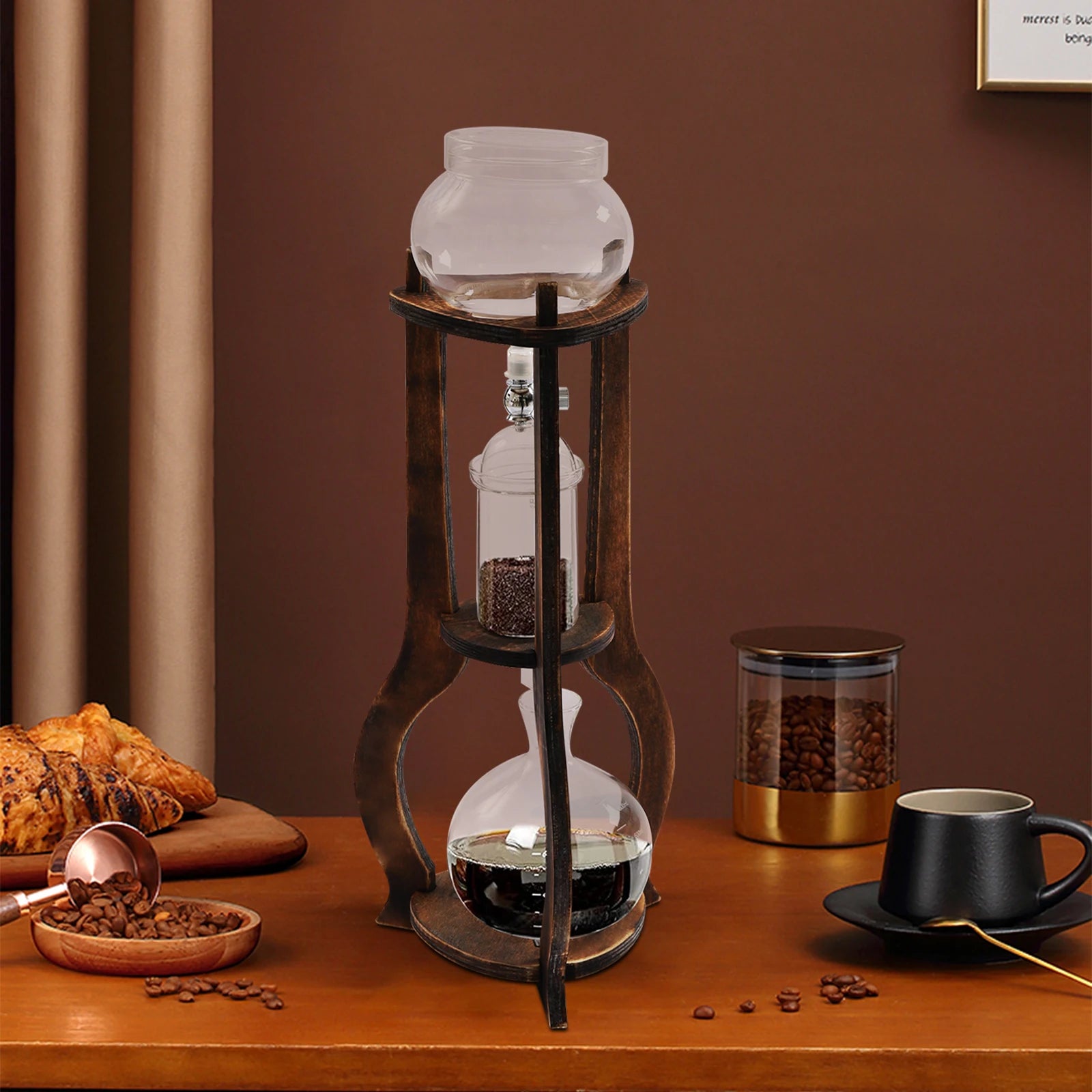 Exquisite Appearance: This cold brew coffee maker uses rounded glassware and vintage wooden shelves to incorporate design aesthetics into the art of cold brew coffee, bringing you a cinematic and sophisticated life.