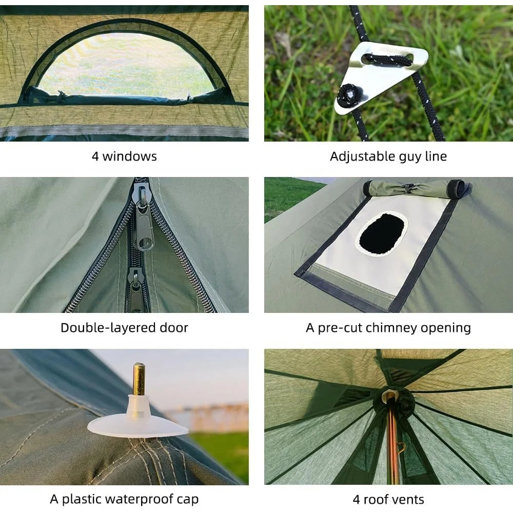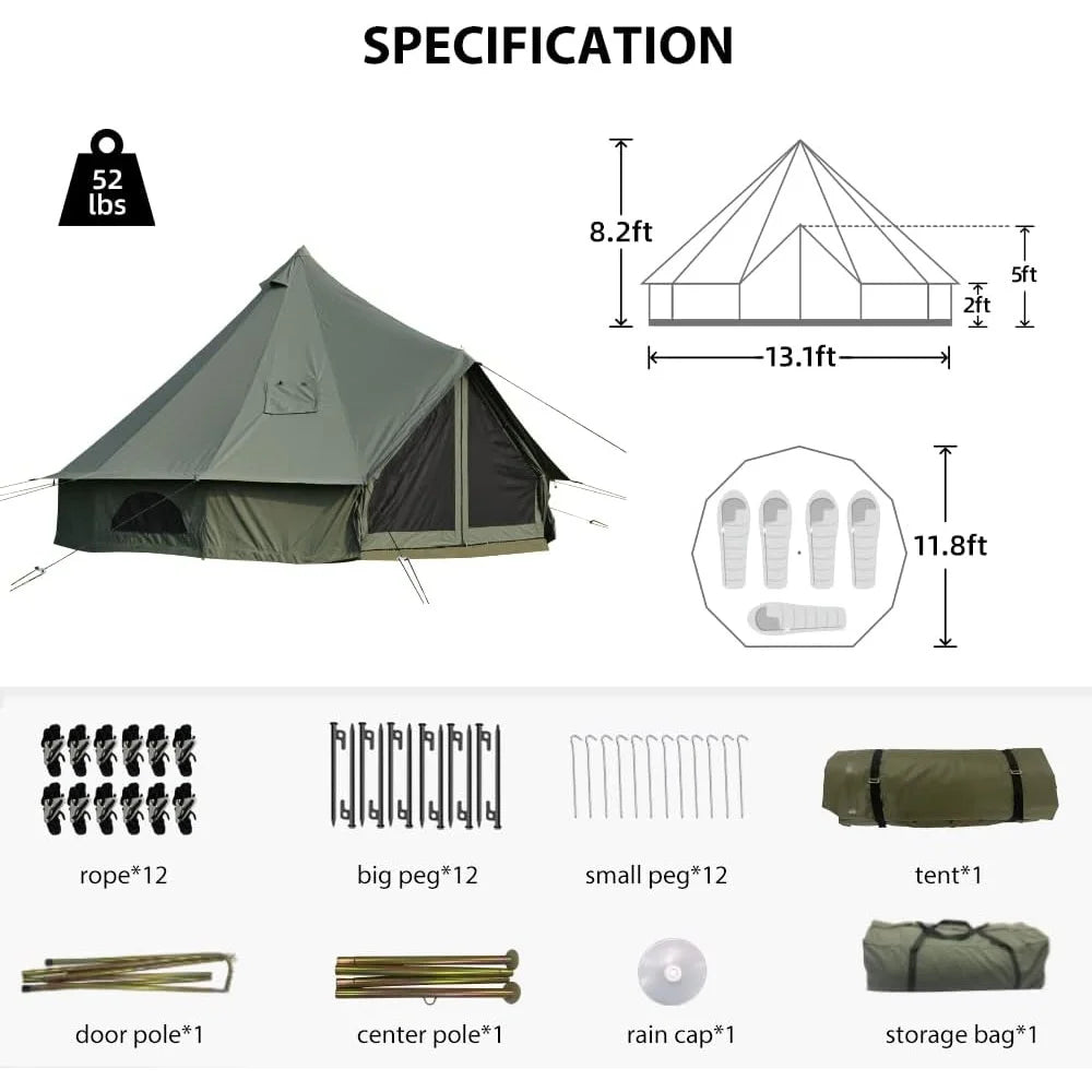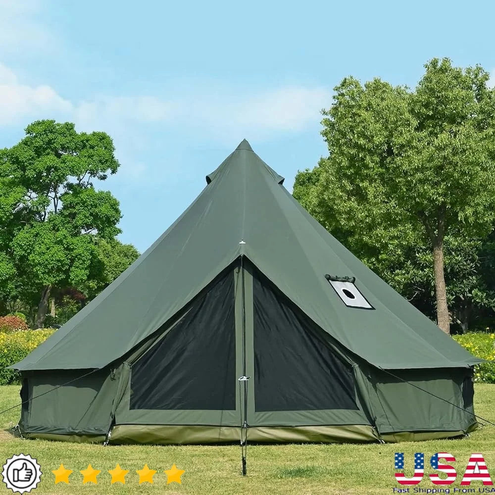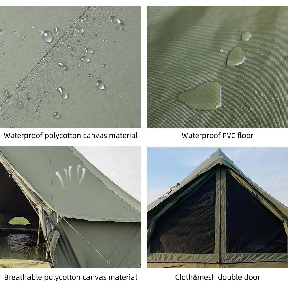Cotton Canvas Bell Tent with Stove Jack Waterproof Glamping Tent Family Camping All Season Durable Portable Large Tent