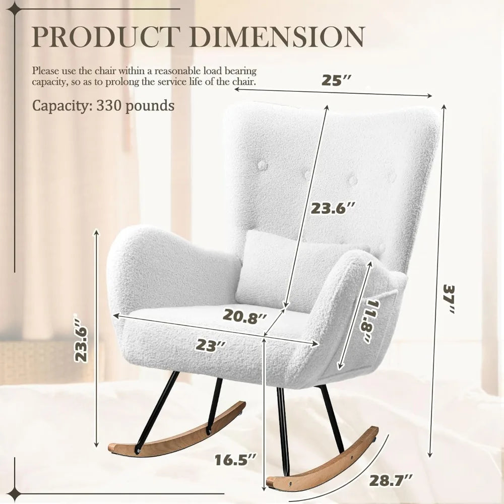 Rocking Chair Nursery, Teddy Upholstered Rocking Chair Indoor with High Backrest Glider Accent Chair, Padded Seat Nursing Chair
