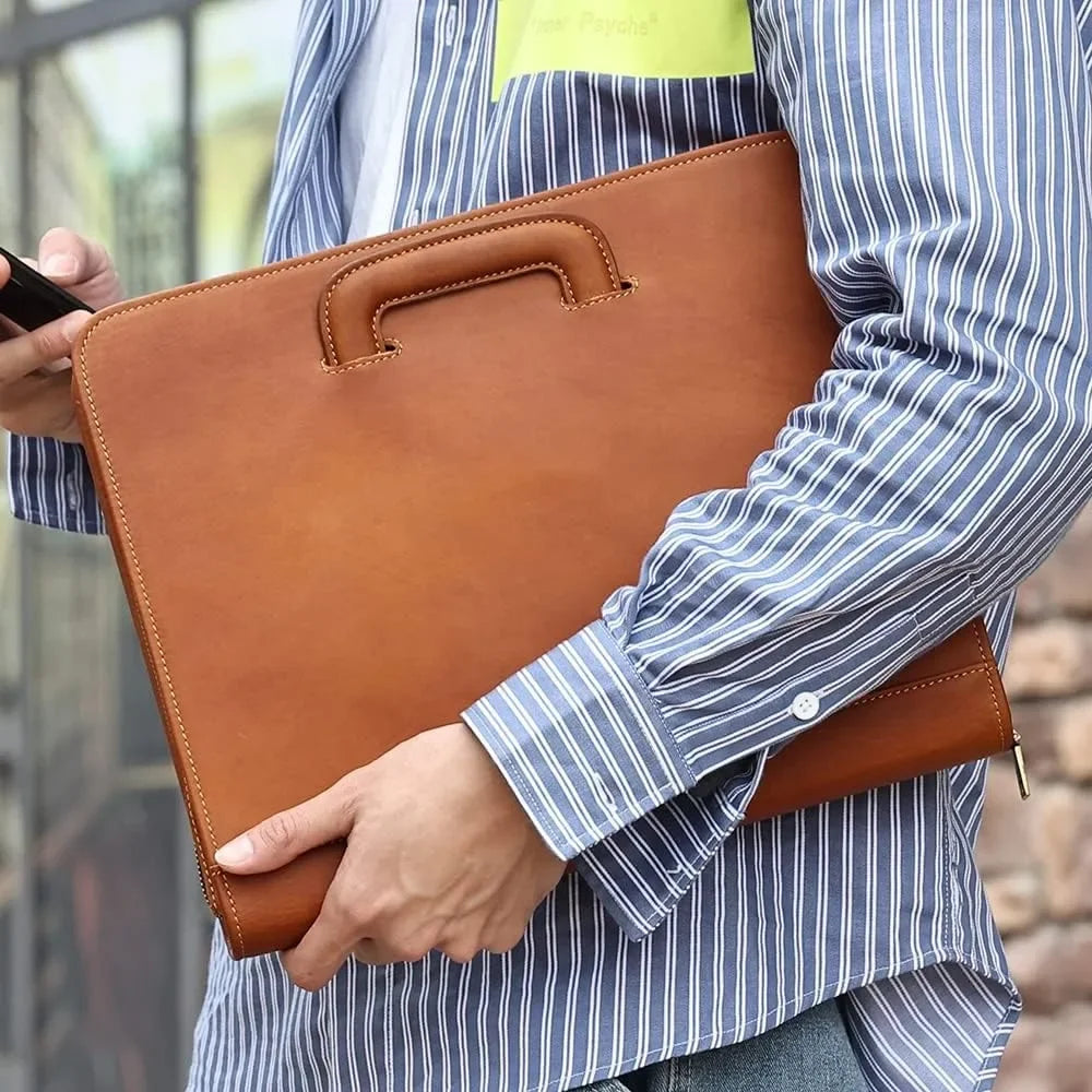 - •RETRACTABLE HANDLE: Latest professional business fashion design. We add the unique retractable handle design to the traditional portfolio, which makes it more portable. You can use the handle whenever and wherever you need, or hide the handle. Leather portfolio organizer is very suitable for study and attend classes, or conference and business travel. The perfect companion for interviews, meetings, and business trips makes you look more professional and sleek.