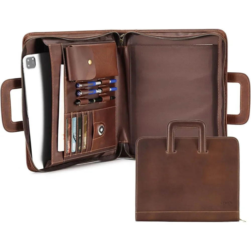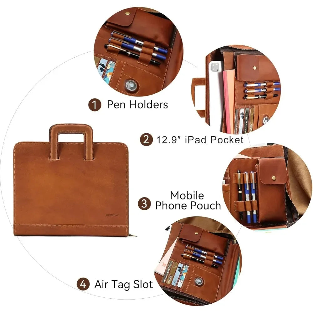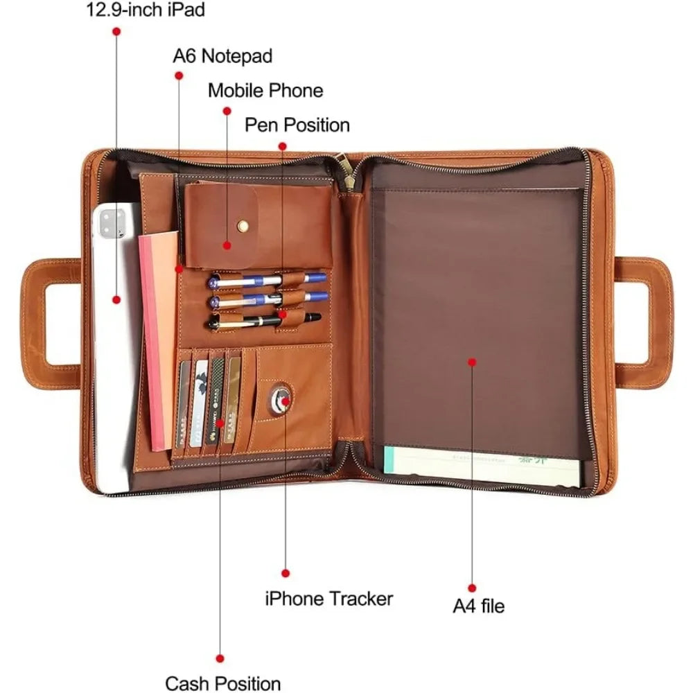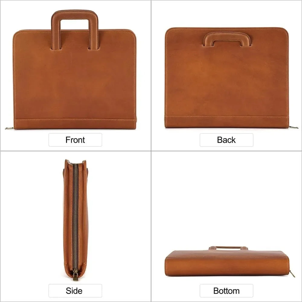 - •RATIONAL DESIGN: leather portfolio has elegant design zippered closure and almost identical front and back. Suitable for both of the left-handed and the right-handed,which can protect all the value stuff you’ll be organizing with our business portfolio. The leather folder has many compartments to store your daily business accessories, such as documents, notebook, pens, cards, letter size notepad. It’ll make you organized, look great. Say goodbye to disorganized.