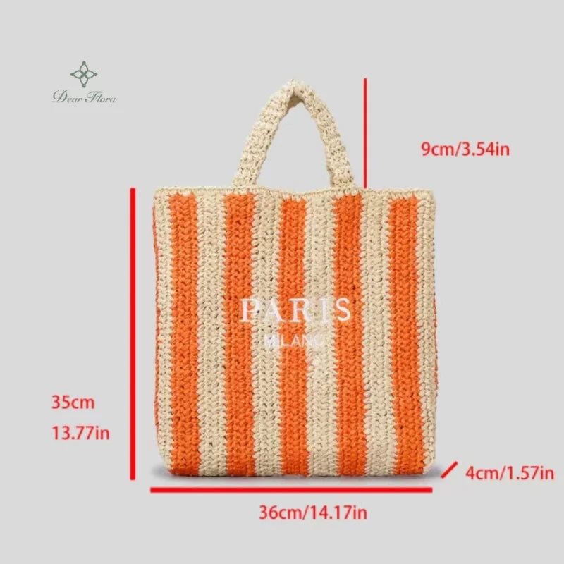 Women Colorful Stripes Fashion Straw Knitting Tote Bag Handwoven Summer Beach Travel Shoulder Bag Casual Bali Big Handbag Purses